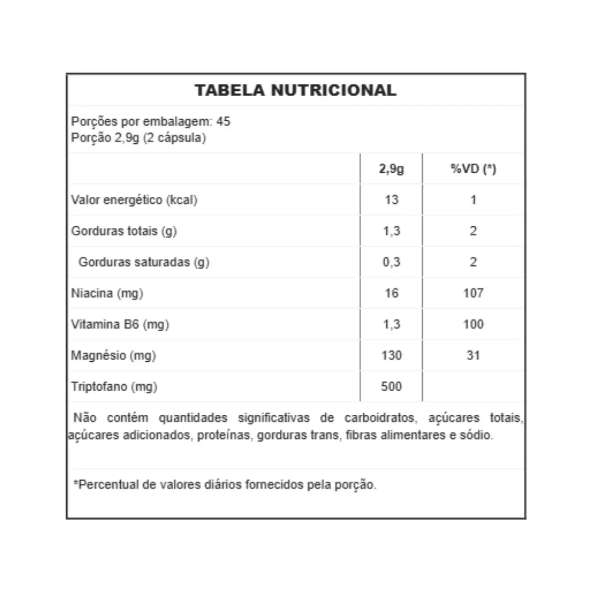 Suplemento Alimentar com L-Triptofano, Magnésio, vitamina B3 e B6 | 90 Cápsulas | Uso Adulto
