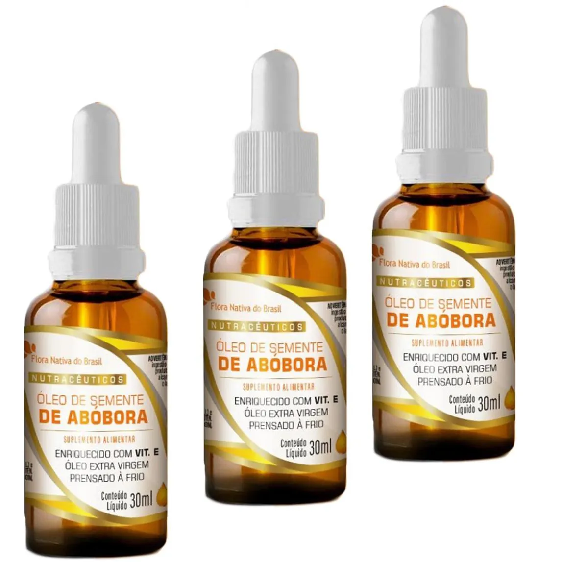 Kit 3Unid Óleo de Semente de Abobora em Gotas 30Ml Flora Nativa do Brasil