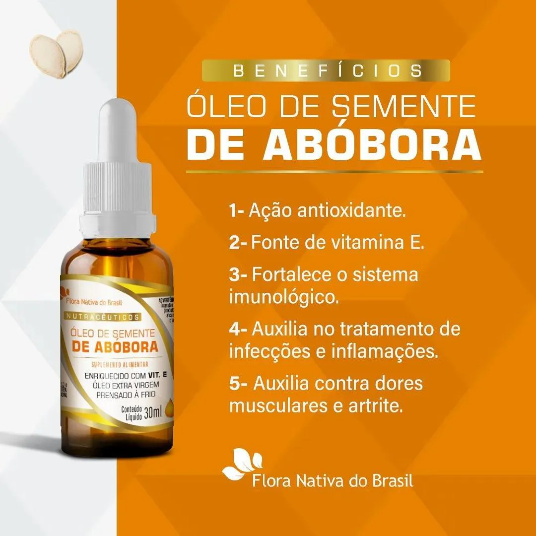 O óleo extraído das sementes da abóbora por prensagem a frio, o óleo de abóbora da Flora Nativa do Brasil é rico em ácidos graxos e vitamina e, oferecendo potente ação antioxidante, proporcionando inúmeros benefícios para a saúde.