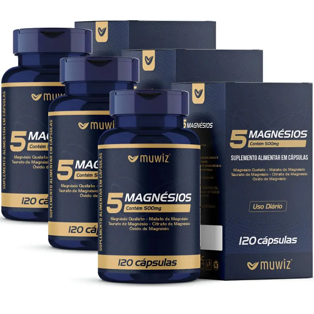 Kit 3X 5 Magnésios 500Mg 120 Cápsulas Quelato + Malato + Taurato + Citrato + Óxido de Magnésio Muwiz