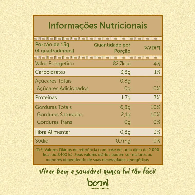 O chocolate 100% Cacau Sem Lactose Vegano (Only1) Only4 é vegano, premium, e livres dos alergênicos mais comuns como leite e seus derivados, glúten, soja, ovos e oleaginosas. Além disso é clean label , ou seja não utilizamos gordura vegetal hidrogenada, aditivos e nem conservantes! O Chocolate 100% Cacau Sem Lactose Vegano (Only1) Only4 é ideal para os apreciadores de um sabor intenso e autêntico. Produzido apenas com massa de cacau, é uma opção pura e natural para quem busca uma experiência marcante. Ingredientes: Massa de cacau. NÃO CONTÉM GLÚTEN. Sobre a marca: Somos pioneiros na produção de chocolates veganos e livres dos alergênicos mais comuns. Estamos desde 2006 reconstruindo o mundo do chocolate: com mais sabor, mais cacau e zero ingredientes de origem animal. Nosso propósito é oferecer chocolates que sejam livres de ingredientes de origem animal, saudáveis de verdade, e que ao mesmo tempo agradem no sabor e na textura. Sobre a Boomi: A Boomi é um mercado online com produtos saudáveis e sustentáveis, que fazem bem à saúde e ao planeta. São mais de 3.500 produtos de 150 pequenas marcas para você! Nascemos pequenos, mas com um propósito gigante: conectar pessoas a produtos acessíveis que tragam benefícios para a saúde, para o planeta e para a sociedade. Para isso, buscamos ofertar produtos de pequenos agricultores e pequenas empresas em um mundo cada vez mais veloz e que busca mais produtividade. Vamos sempre buscar levar o melhor para você! Nosso propósito é conectar alimentos saudáveis e produtos naturais e sustentáveis a pessoas preocupadas com a sua saúde e com a saúde do planeta. Com preço justo, comodidade e informações confiáveis. Curadoria: Nossos produtos são criteriosamente validados pela nossa curadoria de produtos saudáveis, que busca produtores e empresas que compartilham do nosso alto padrão de qualidade. Da enorme lista de ingredientes banidos à preocupação do bem estar animal, desde o primeiro dia seguimos fieis aos nossos valores, trabalhando com transparência e práticas sustentáveis. Vendemos apenas produtos que admiramos e que nos orgulha.