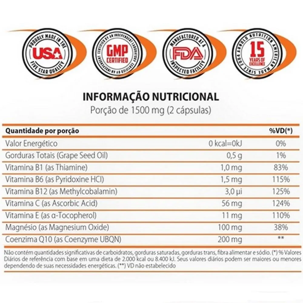 A Coenzima Q10 Ubiquinol da Arnold Nutrition é a mais completa do mercado, apresenta 200mg de Coenzima Q10 na porção diária recomendada de 2 cápsulas. Ainda contém vitamina e, B1, B6, B12, C , Magnésio e MCT.