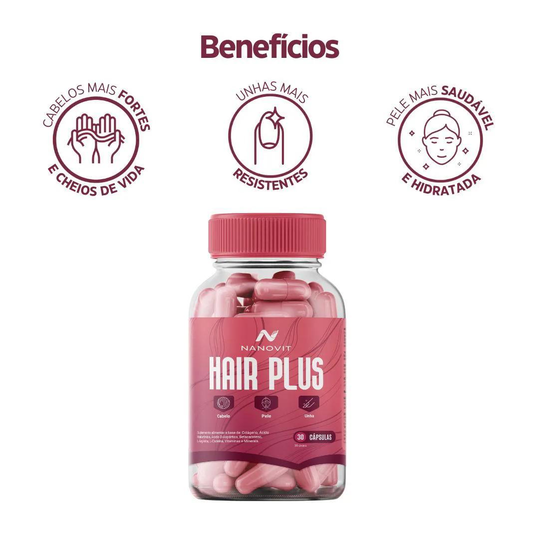 O Nanovit Hair Plus chegou com a fórmula mais completa e inteligente para a recuperação do cabelo, pele e unhas. Uma solução 3 em 1 desenvolvida para dar um impulso poderoso na autoestima e no cuidado diário com a beleza.