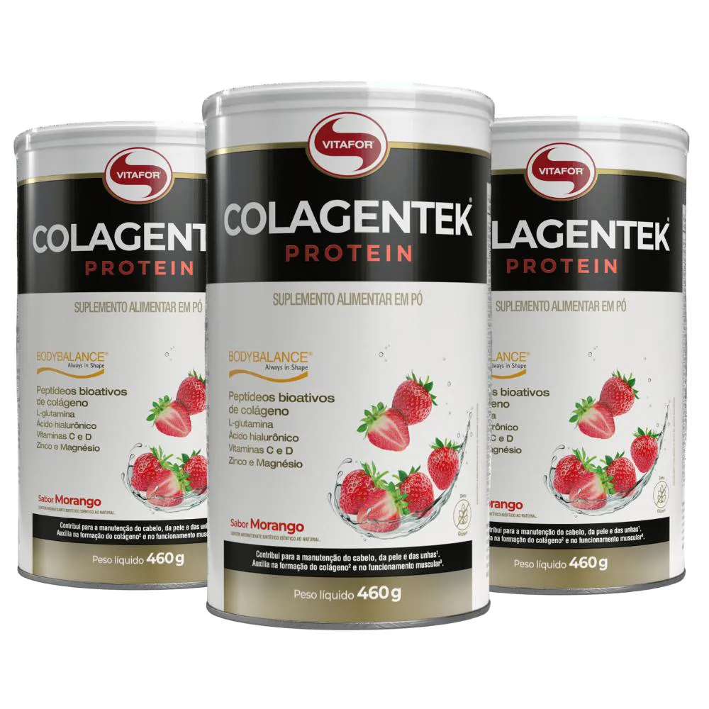 Kit 3x Colagentek Protein Bodybalance Morango 460g Vitafor