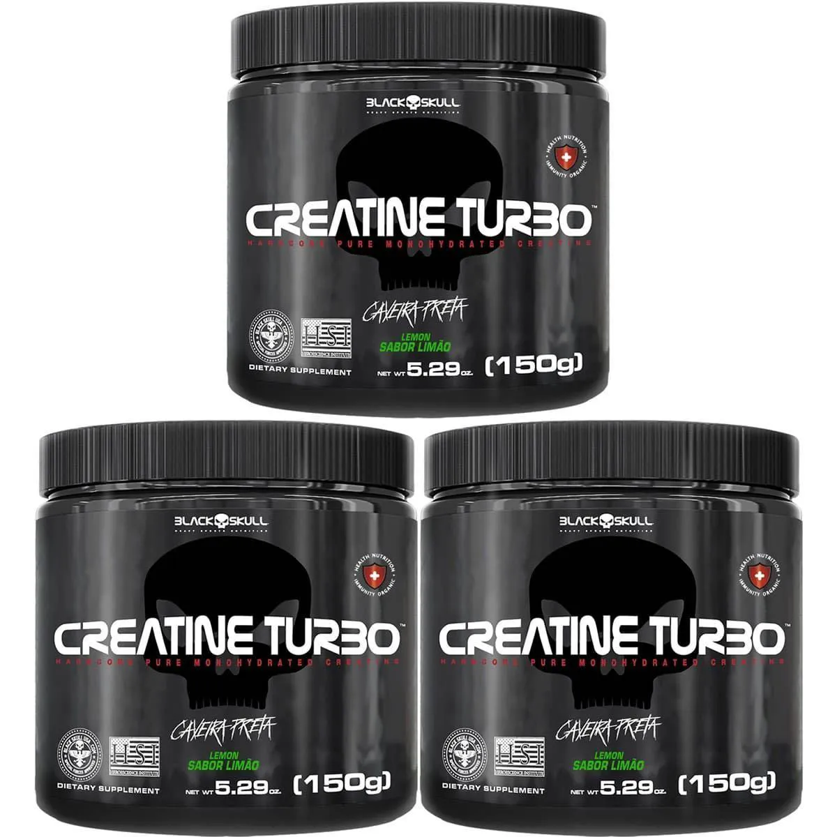 Kit 3X Creatine Turbo Monohidratada - 150G Limão - Black Skull