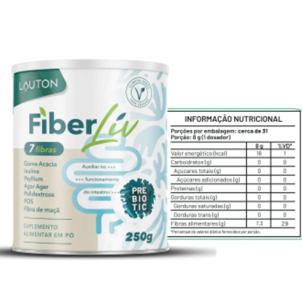 Kit 3x Fibra Prebiotico Fiberliv 7 Fibras 250g - Lauton
