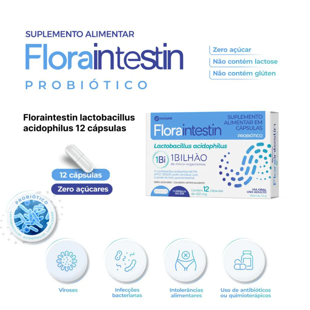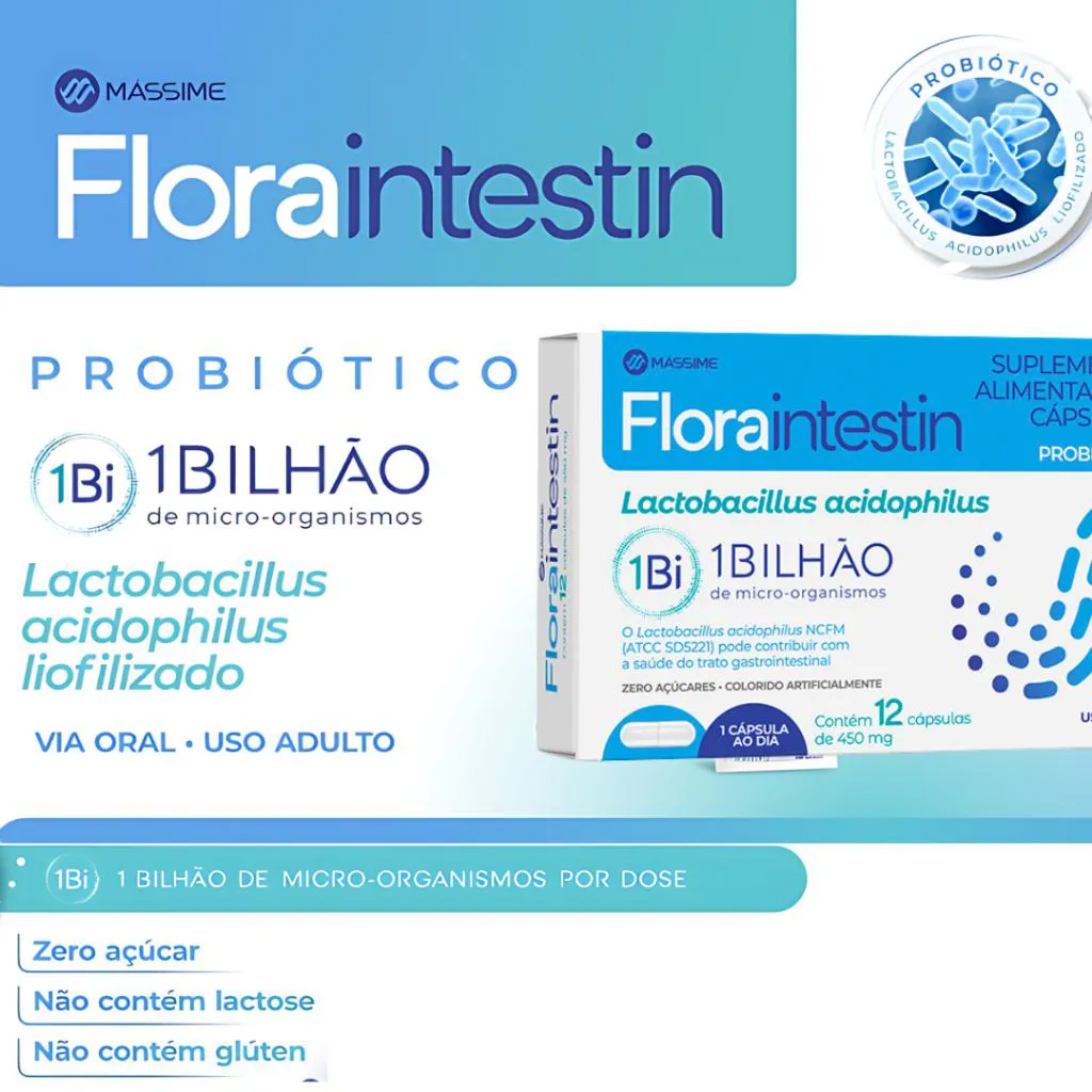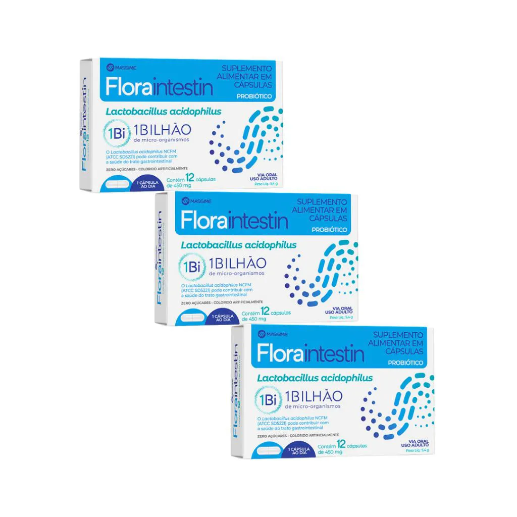 Kit 3X Floraintestin Probiótico 1 Bilhões Lactobacillus 12 Cápsulas - Massime