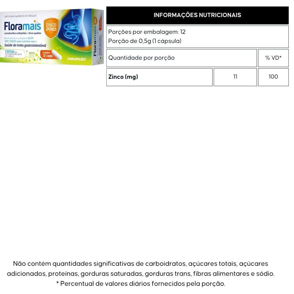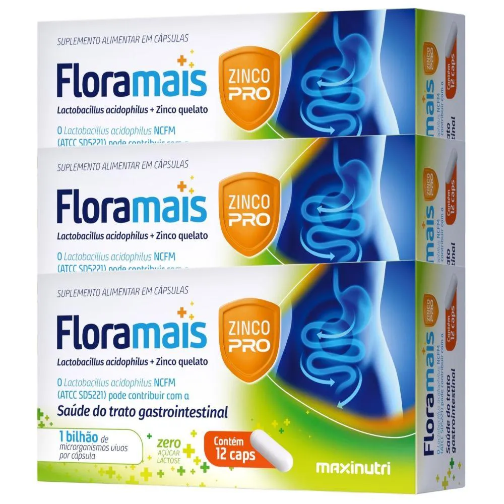 Kit 3X Floramais + Zinco Probiotico Lactobacillus 12 Cápsulas - Maxinutri