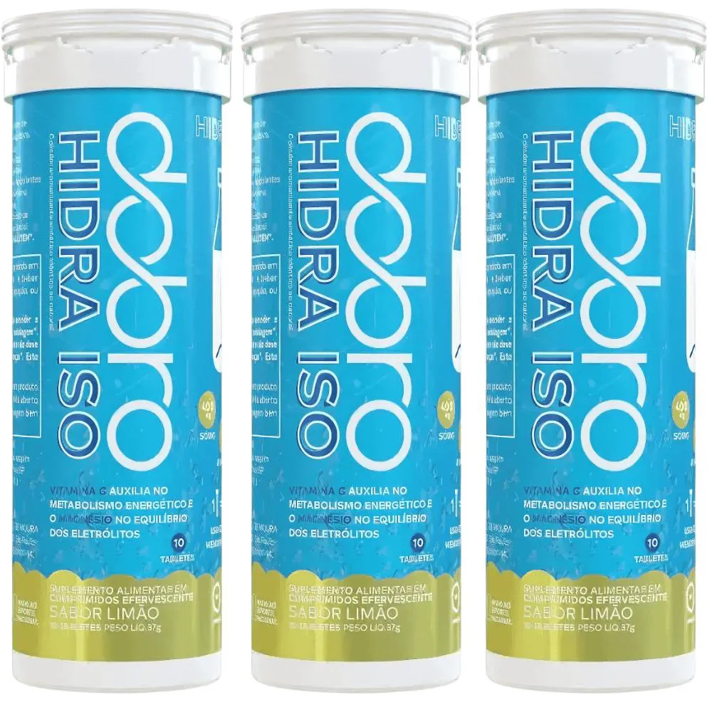 Kit 3X Hidra Iso - Repositor Eletrolítico (10 Tabs) Sabor Limão - Dobro