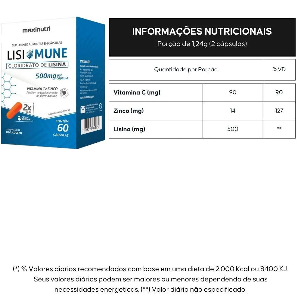 Kit 3x Lisimune (lisina, Vitamina C e Zinco) 60 cápsulas - Maxinutri