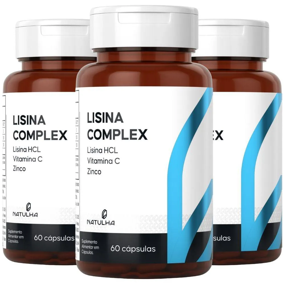 KIT com 3 unidades de Lisina Complex (Lisina HCL, vitamina c e Zinco) da marca Natulha com 60 capsulas cada.