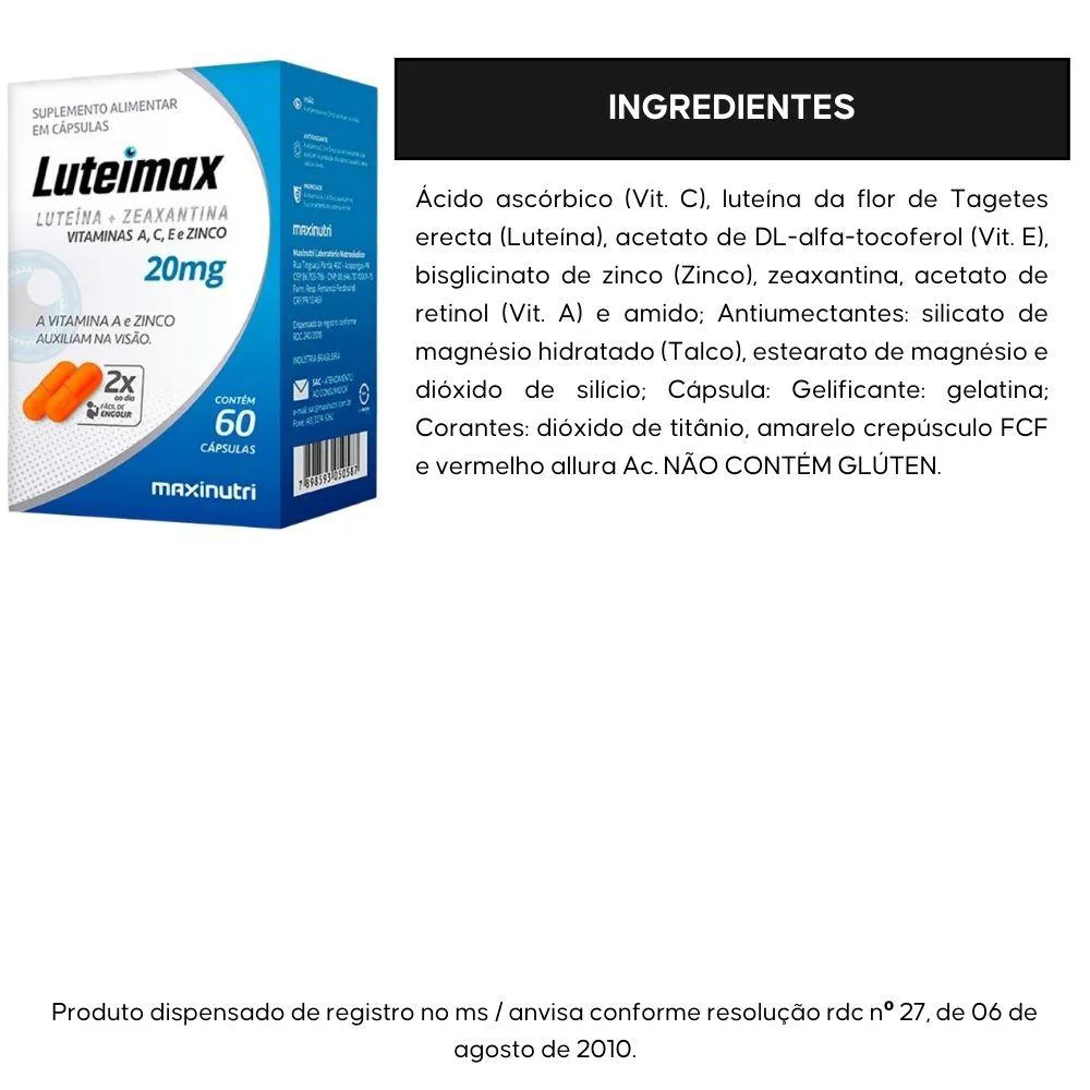 Kit 3x Luteimax (luteína com Zeaxantina) 60 cápsulas - Maxinutri