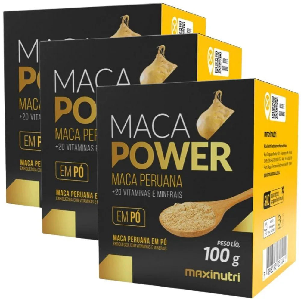 KIT com 3 unidades de Maca Peruana Power + Vitaminas e minerais da marca Maxinutri com 100g cada.