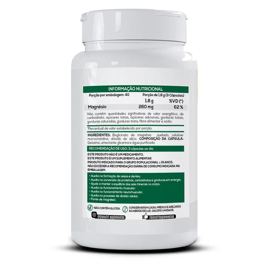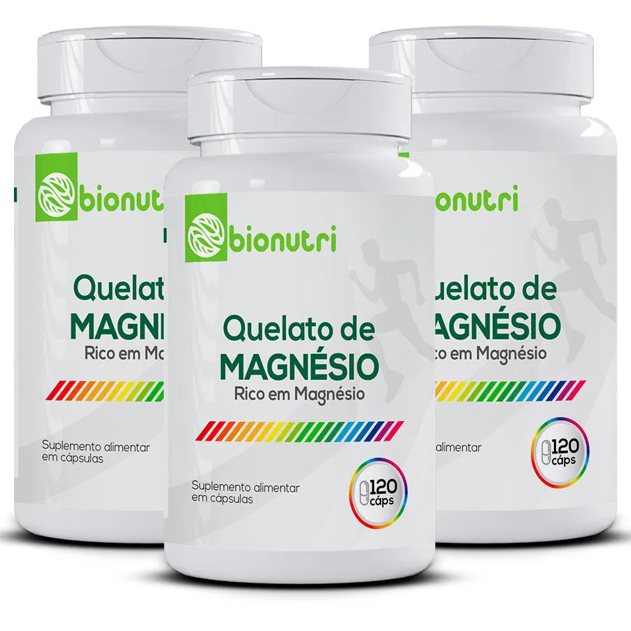 Kit 3x Magnésio Quelato 100% Puro Rico em Magnésio 120 cápsulas Bionutri