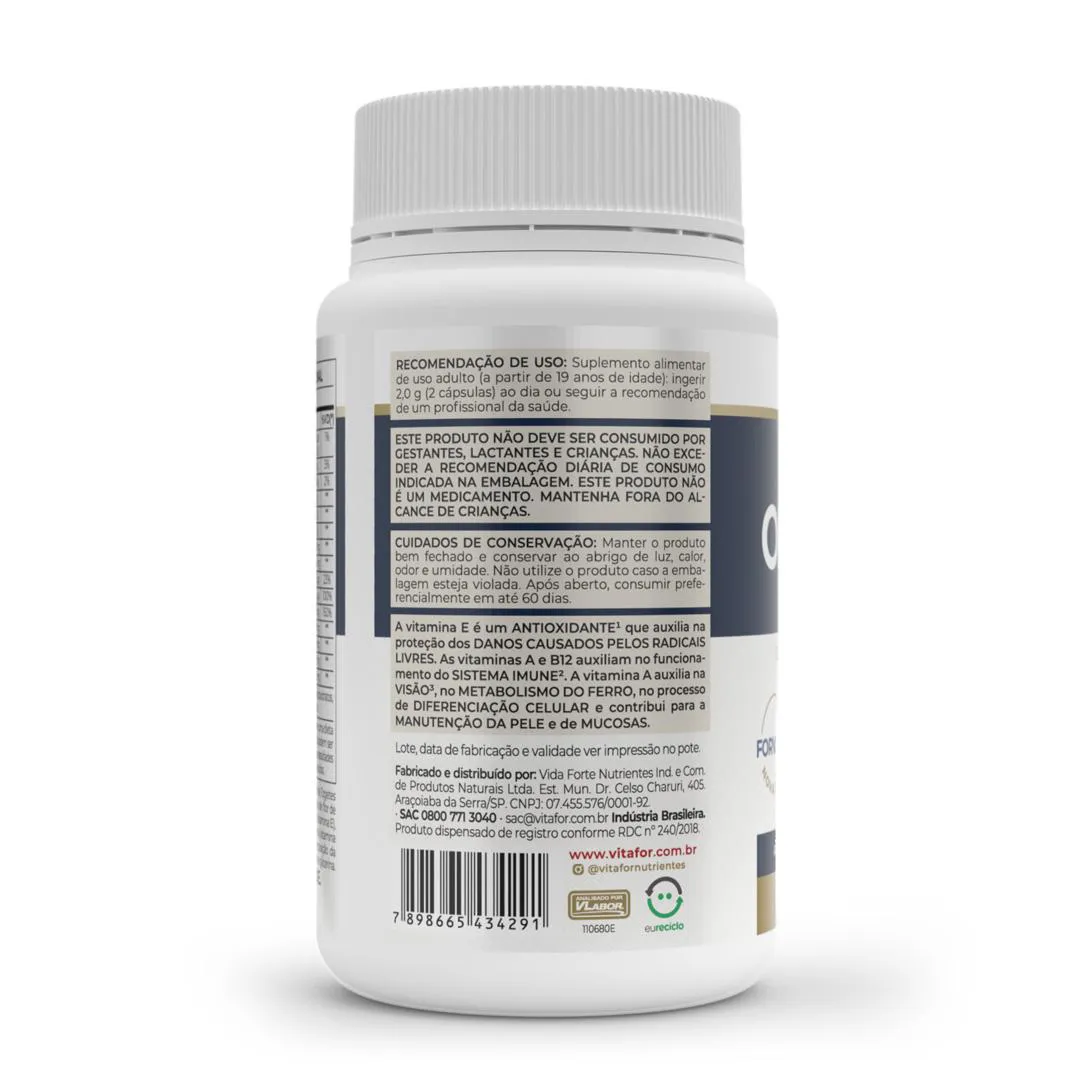 OMEGAFOR VISION® Vitafor, é um suplemento alimentar à base de óleo de peixe (fonte de Ômega 3-TG), com associação de: vitaminas, cisteína, taurina, luteína, zeaxantina e a vitamina A auxiliando na saúde da visão, que atuam de forma sinérgica em sua composição somados aos benefícios do ômega-3. O suplemento de ômega 3 tem em sua formulação os ácidos graxos EPA e DHA. O EPA é um ácido essencial geralmente conhecido por sua ação no sistema cardiovascular. Enquanto o DHA é um ácido graxo essencial geralmente conhecido por sua ação no sistema cognitivo Estudos sugerem que o ômega pode auxiliar no alívio aos sintomas do olho seco. Nosso Omegafor ® Vision Vitafor se apresenta na forma TG (triglicerídeos), para facilitar a absorção do corpo. É enriquecido com vitaminas, cisteína, taurina, luteína, zeaxantina e a vitamina A auxiliando na saúde da visão, que atuam de forma sinérgica em sua composição somados aos benefícios do ômega-3. Omegafor ® Vision Vitafor é um produto que atende aos mais altos graus de exigência do mundo em pureza, potência e frescor. A vitamina e é um antioxidante que auxilia na proteção de danos causados pelos radicais livres. As vitaminas A e B12 auxiliam no funcionamento do sistema imune. A vitamina B12 auxilia na formação de células vermelhas no sangue, no metabolismo dos carboidratos, proteínas, gorduras, da homocisteína e no processo de divisão celular. A vitamina A auxilia na visão, no metabolismo do ferro, no processo de diferenciação celular e contribui para a manutenção da pele e de mucosas. Alguns peixes são contaminados por metais pesados – metais que foram lançados nas águas - ao ingerir peixes contaminados você leva estes metais pesados para seu corpo, podendo comprometer sua saúde. Na escolha do seu Ômega é essencial procurar por pureza e isenção de metais pesados na composição. Omegafor Vision possui certificado internacional IFOS ™, que mede a pureza do produto e encontra-se livre de metais pesados.