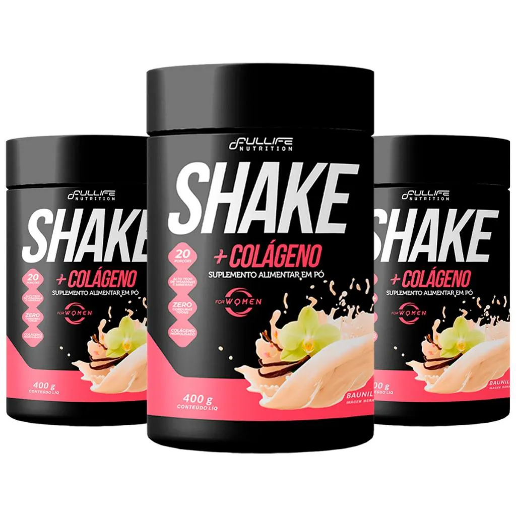 Kit 3X Shake Substituto de Refeição Zero Açúcar + Colágeno 400G - Fullife Baunilha
