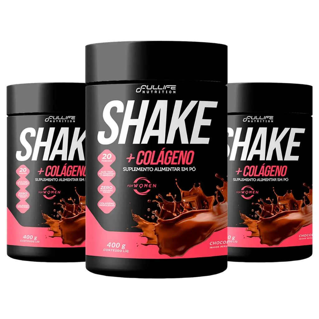 - 3x Shake substituto de refeição Zero Açúcar Sem Glúten e com colágeno 400g DESCRIÇÃO DO ANUNCIO: SHAKE FOR WOMEN: é um Shake substituto de refeição zero açúcar sem gluten e com Colágeno com uma fórmula completa e exclusiva, sua fórmula contém colágeno hidrolisado que ajuda no fortalecimento da pele em processos de emagrecimento. BENEFÍCIOS DO USO DO SHAKE SUBSTITUTO DE REFEIÇÃO COM COLAGENO: - POSSUEM VITAMINAS - POUCAS CALORIAS - AJUDA NA SACIEDADE - POSSUI COLAGENO MODO DE PREPARO: adicione 1 colhere de sopa (cerca de 20g) do Shake em 250ml de leite desnatado, bata no liquidificador ou na sua coqueteleira por cerca de 15 segundos. Consuma logo após o preparo. Ao dosar o produto utilize sempre utensílios secos.