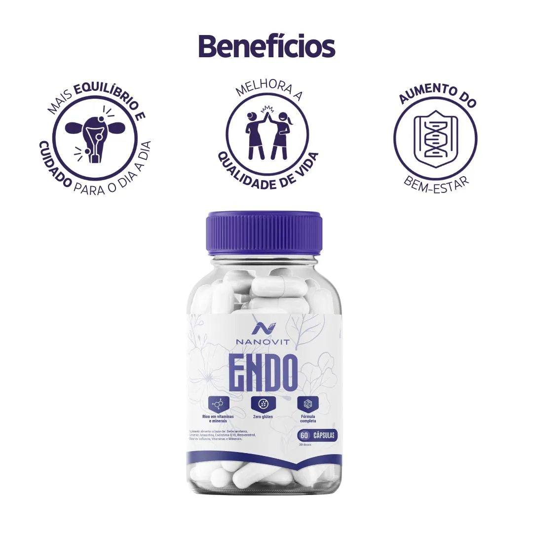 O Nanovit Endo é um suplemento desenvolvido pela Nanovit, que combina nanotecnologia e ingredientes naturais para apoiar o equilíbrio do organismo feminino no dia a dia.