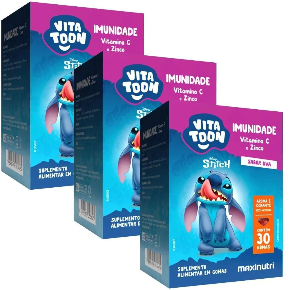 Kit 3X Vitamina C com Zinco Kids Vitatton Stitch 30 Gomas - Maxinutri UVA