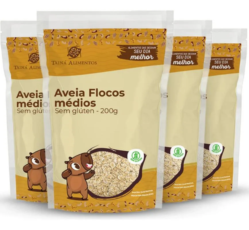 Kit 4 Aveia em Flocos Medios 200G - Taina Alimentos