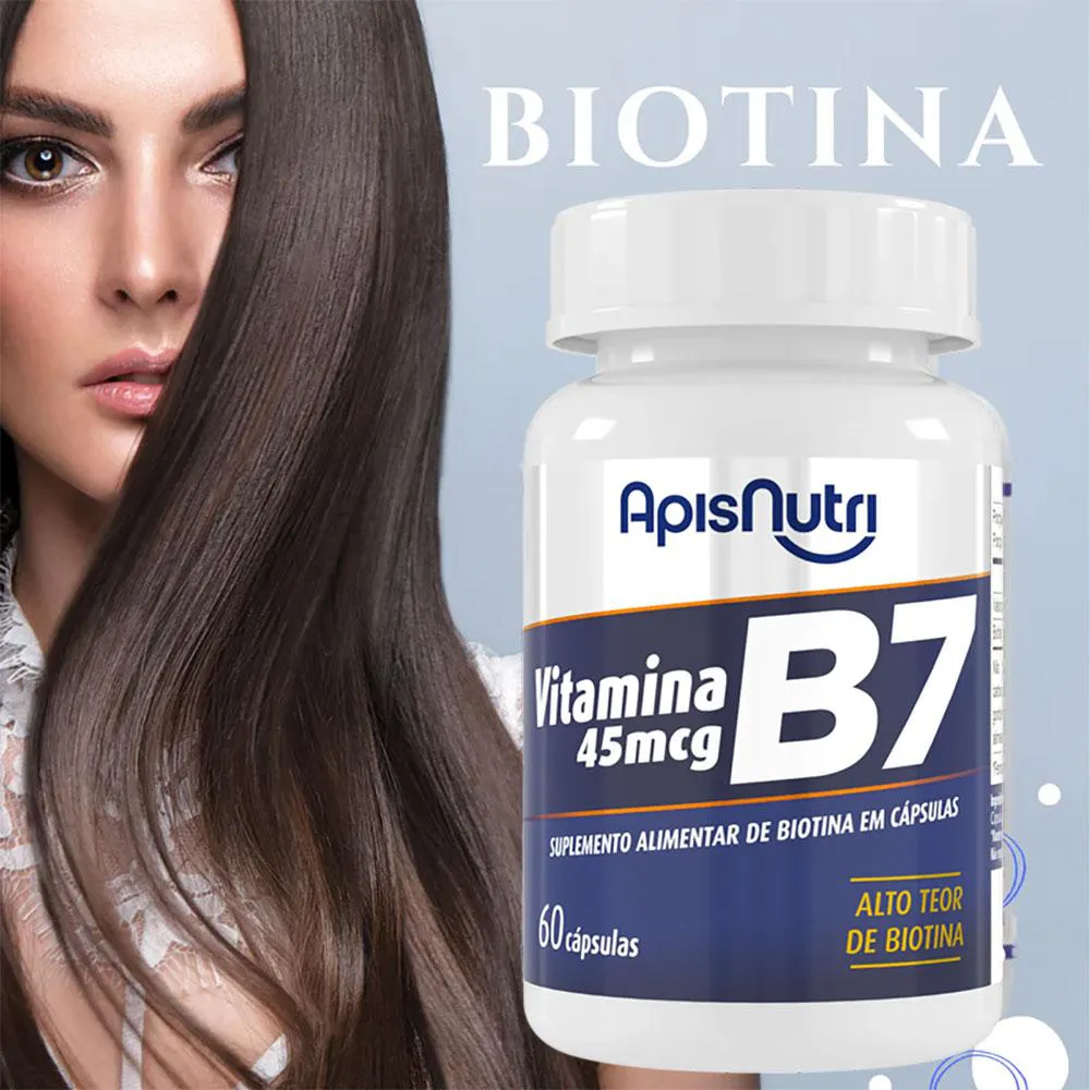 Biotina é a base de Vitamina B7, que estimula a produção de queratina necessária para a saúde do cabelo, além de promover a hidratação. Também é importante para a pele, já que a mantém saudável e evita o ressecamento.