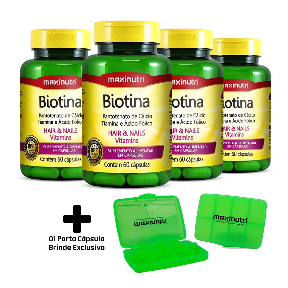 KIT 4 BIOTINA SAúDE DA PELE UNHAS E CABELOS 60 CAPS + BRINDE MAXINUTRI