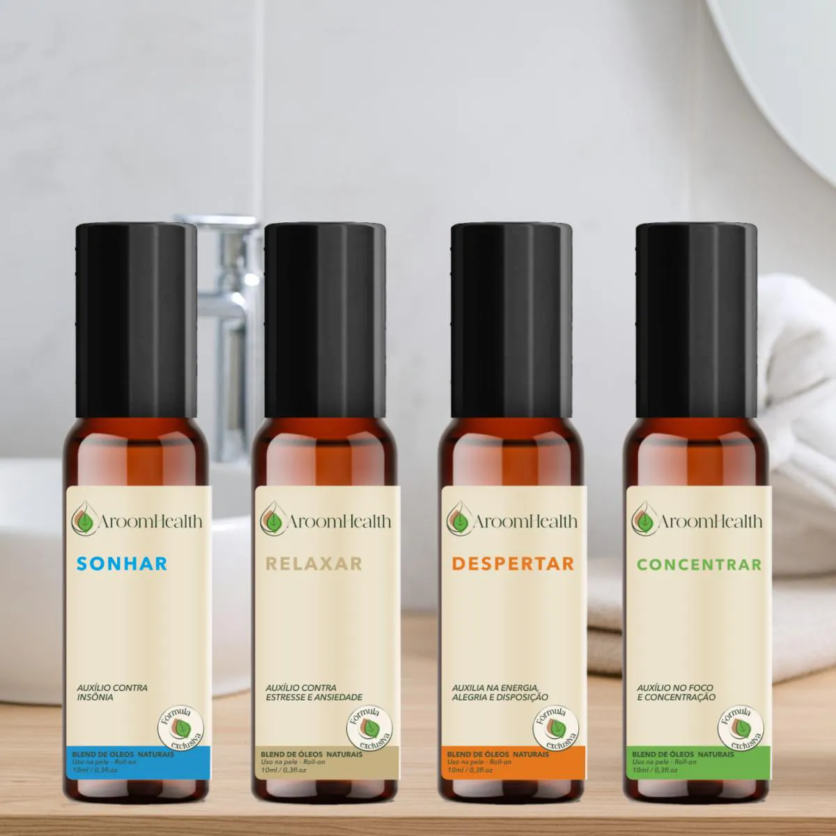 - Blends naturais com óleos essenciais puros para diferentes momentos do dia.