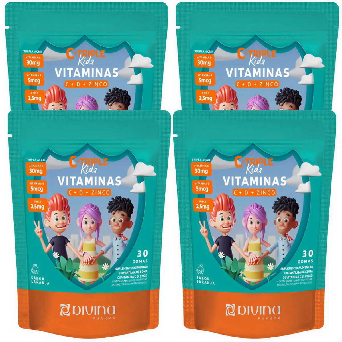 Kit 4 C-Triple Kids Vitaminas C + D + Zinco Imunidade Total 120 Gomas Sabor Laranja – Divina Pharma