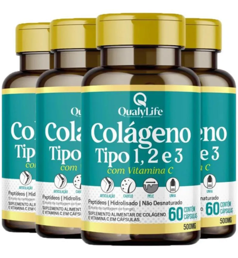 Kit 4 Colageno Tipo 123 500Mg 60 Capsulas - Qualylife A