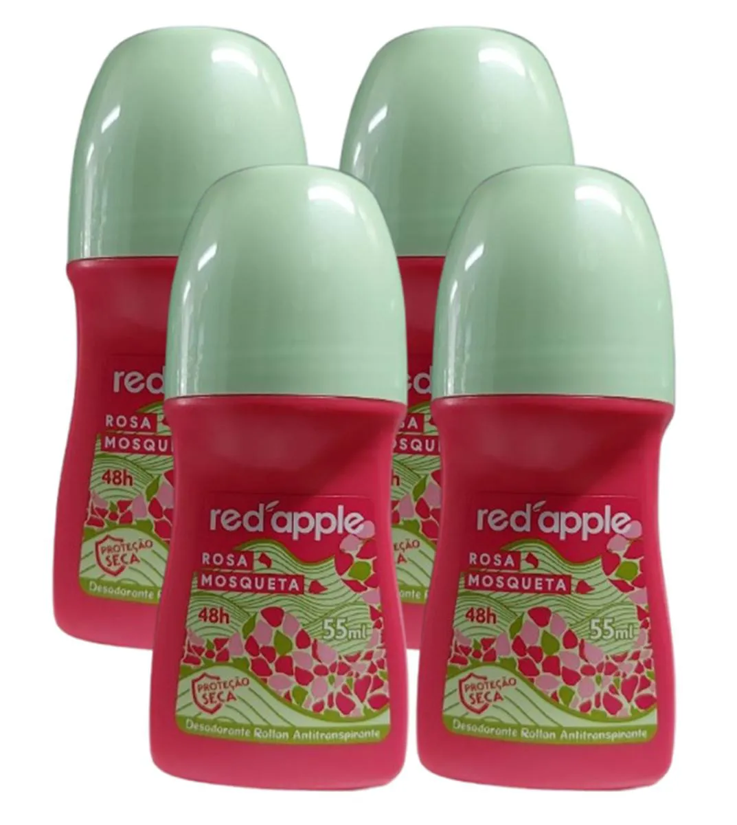 Kit 4 Desodorante Red Apple Roll On Rosa Mosqueta 55ml