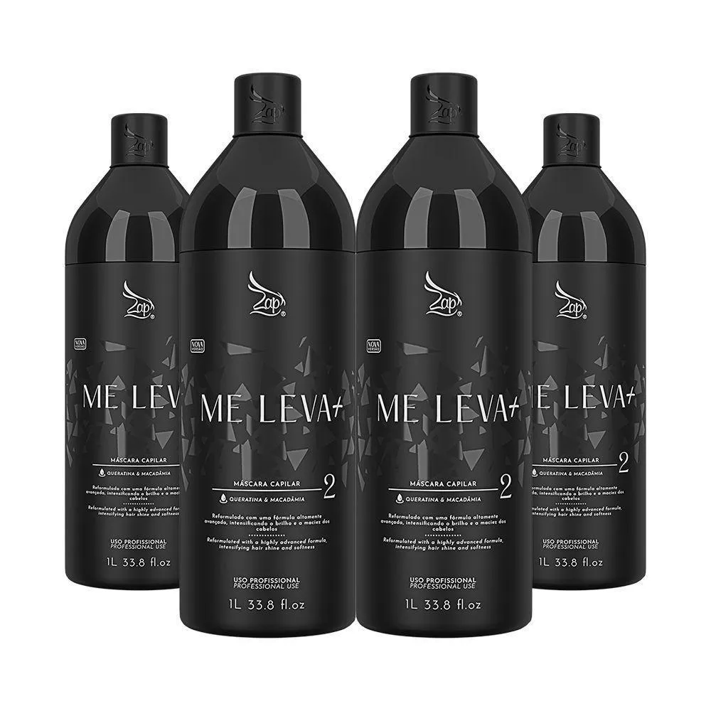 A escova progressiva Me Leva Black Passo 2 é um tratamento capilar desenvolvido para proporcionar alisamento eficaz e cuidado intensivo aos fios danificados. Formulada com ingredientes de alta qualidade, sua composição inclui:? Óleo de Macadâmia e Óleo de Coco: nutrem profundamente os cabelos, devolvendo os nutrientes perdidos, promovendo brilho intenso, maciez e alinhamento dos fios, sem deixá-los pesados ou oleosos.? Aloe Vera: possui enzimas que removem células mortas, proporcionando hidratação profunda aos fios.? Ceramidas: extraídas de grãos de soja e sementes de girassol, mantêm a integridade da proteína capilar, conferindo textura suave, maciez e brilho natural.? Sericina: proteína derivada da seda que, ao se ligar com a queratina, forma um filme natural protetor nos cabelos, deixando-os mais sedosos.Este produto é ideal para quem busca cabelos lisos, hidratados e com aspecto natural. A aplicação deve ser realizada por um cabeleireiro, seguindo as instruções fornecidas para garantir resultados satisfatórios. Além disso, a Escova Progressiva Me Leva Black é com outros processos químicos e permite que os cabelos sejam lavados imediatamente após sua aplicação.Observações Importantes:? Não recomendado para gestantes, lactantes e crianças.? Evitar o uso em clientes com couro cabeludo sensível, irritado ou ferido.? Realizar teste de mecha antes da aplicação completa.? A quantidade média a ser aplicada é de 50ml para cabelos de tamanho médio.Para obter melhores resultados e preservar a saúde dos fios, é essencial seguir as orientações de uso e cuidados pós-tratamento.ATENÇÃOAS IMAGENS SÃO MERAMENTE ILUSTRATIVAS E PODEM SOFRER VARIAÇÕES DE COR E PEQUENOS DETALHES DE ACORDO COM O SEU MONITOR, ILUMINAÇÃO DO AMBIENTE E ATÉ MESMO A SUA PERCEPÇÃO 4 Escovas Progressivas Me Leva Black Passo 2 1 Litro