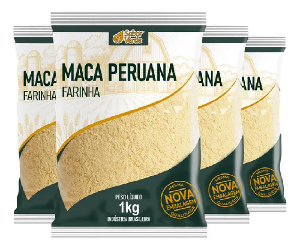 Kit 4 Farinha de Maca Peruana 1Kg - Sabor Verde