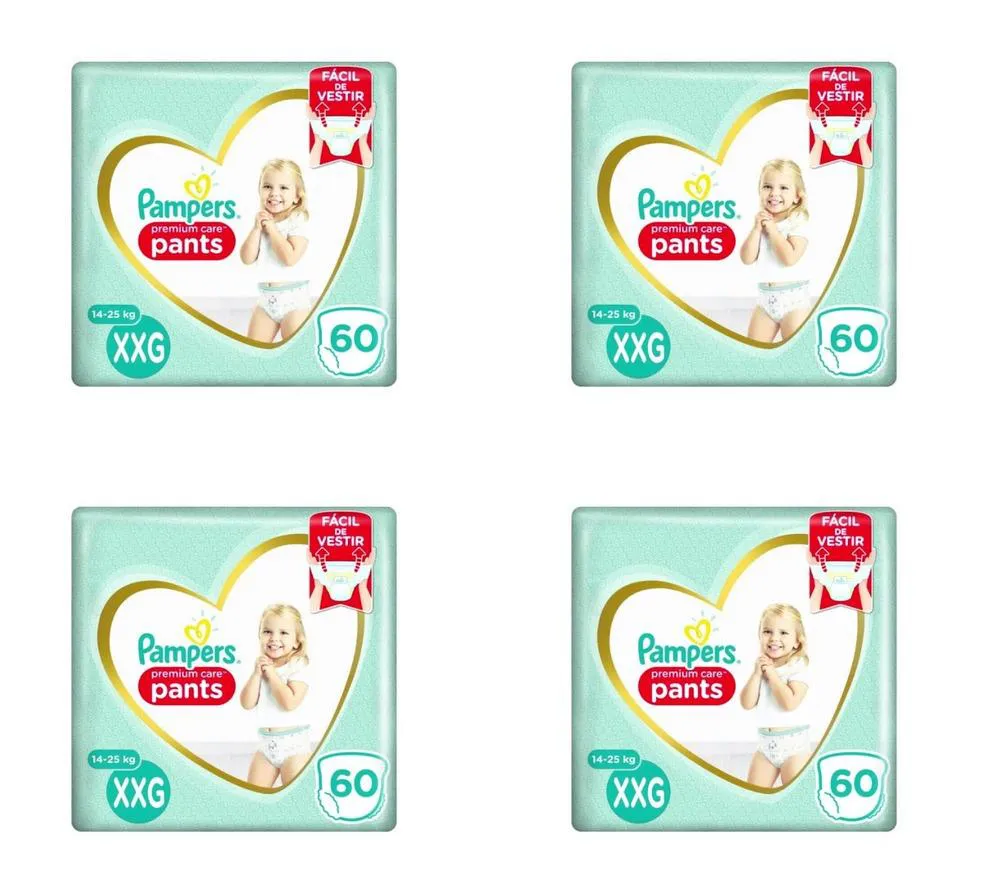Kit 4 Fraldas Pampers C/ Pants Top Xxg C/60 unidades Cada