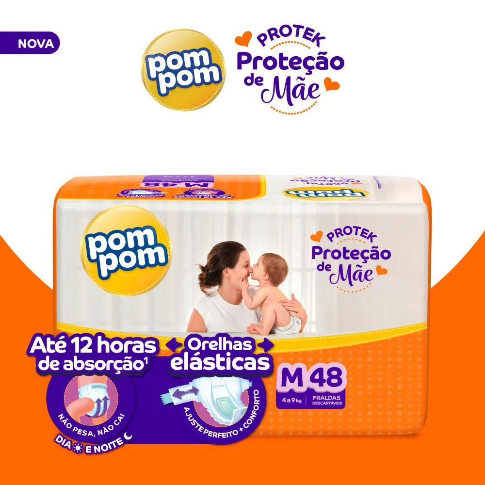 A Fralda Pom Pom Derma Protek possui fita agarradinha, abre e fecha sempre que necessário sem estragar a fralda. Sua camada interna superabsorvente aliada as barreiras antivazamento distribui mais rápido o xixi, evitando que ele permaneça em contato com a pele deixando-o sequinho por até 12 horas. Dermatologicamente testada.