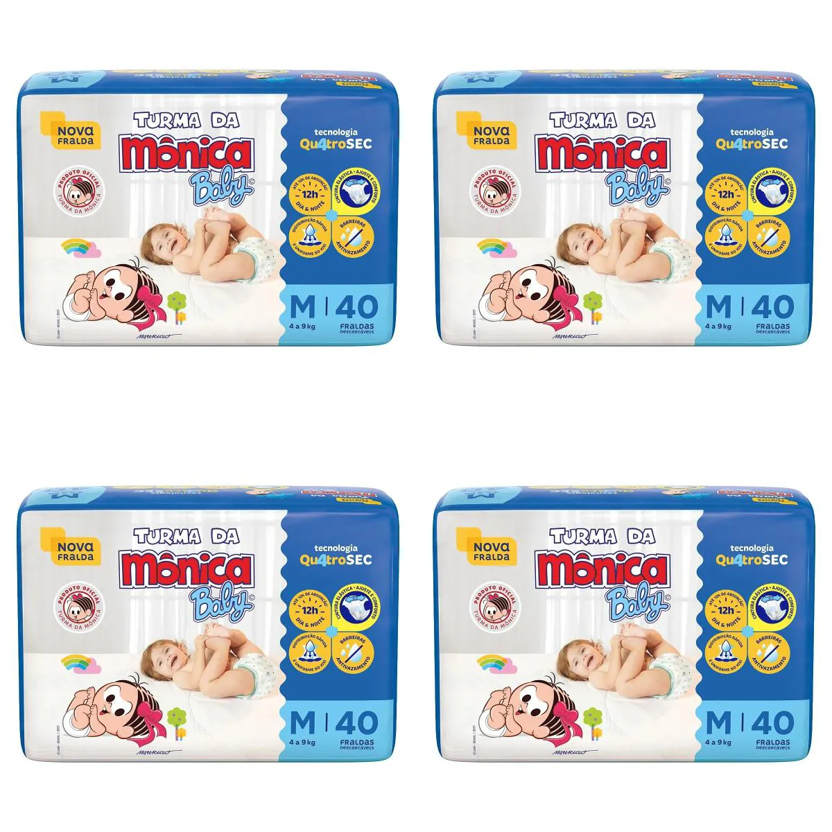 Kit 4 Fraldas Turma da Mônica Econômica M com 40 unidades Cada