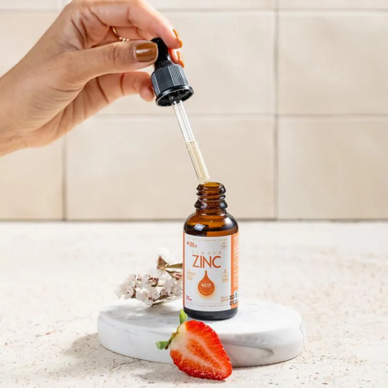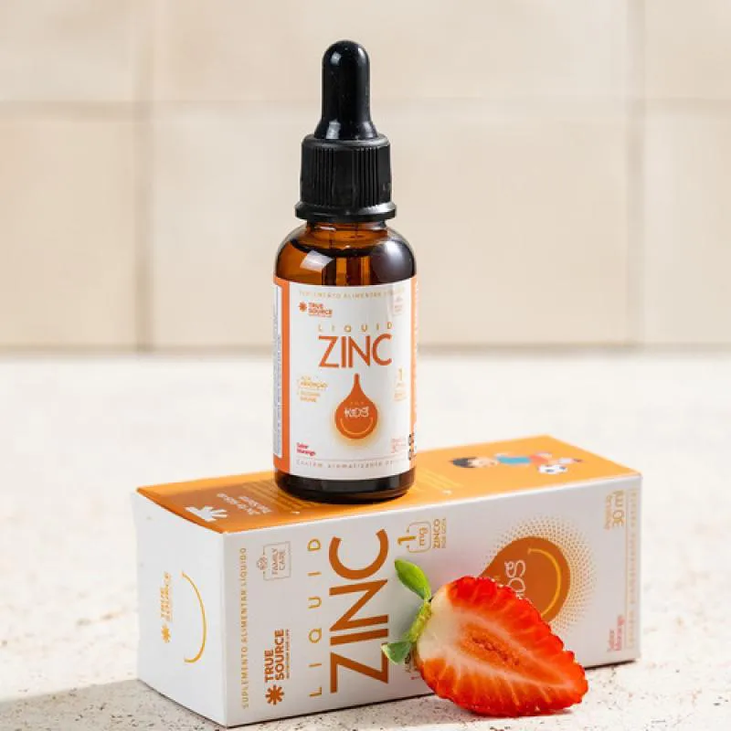 Liquid Zinc for Kids da True Source é um suplemento líquido formulado especialmente para crianças a partir de 4 anos, com