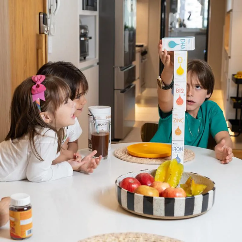 crianças maiores de 4 anos. Gestantes, lactantes, crianças menores ou pessoas com condições médicas devem usar apenas com orientação profissional. Pode causar leve sabor residual; evite misturar em