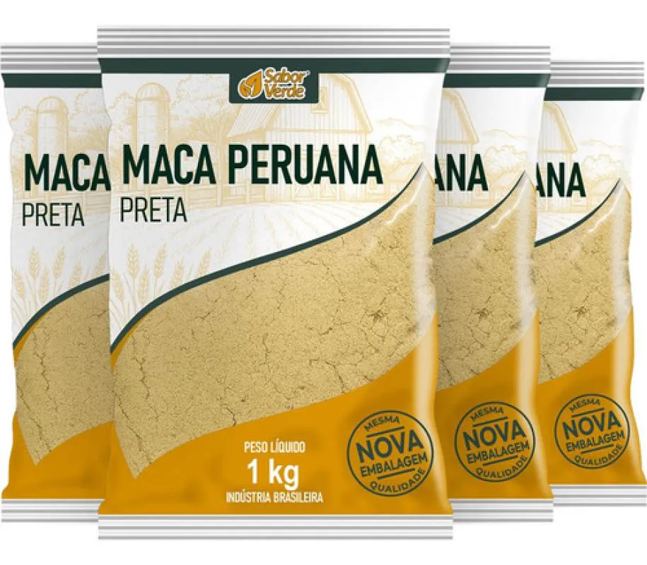 Kit 4 Maca Peruana Preta em Po 1Kg - Sabor Verde
