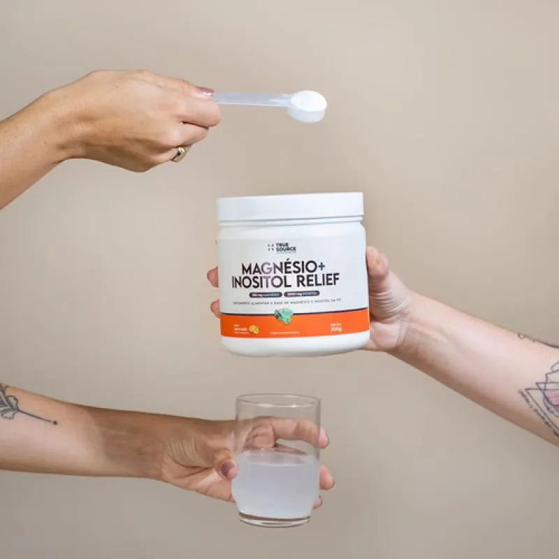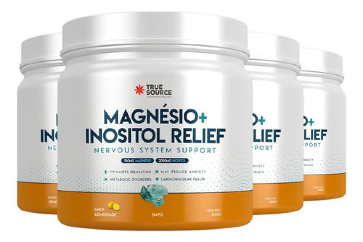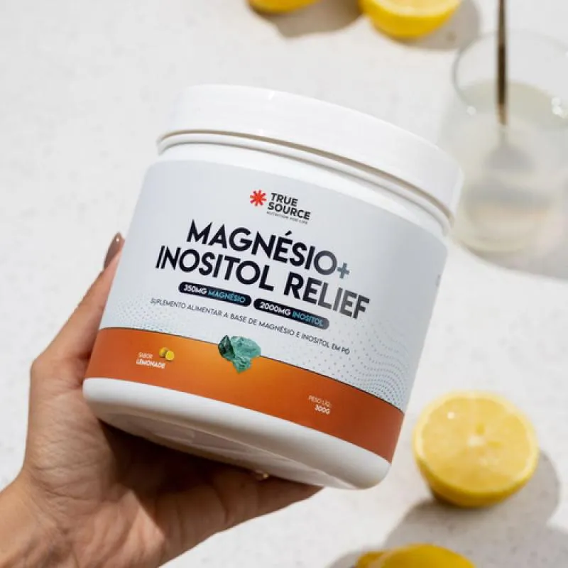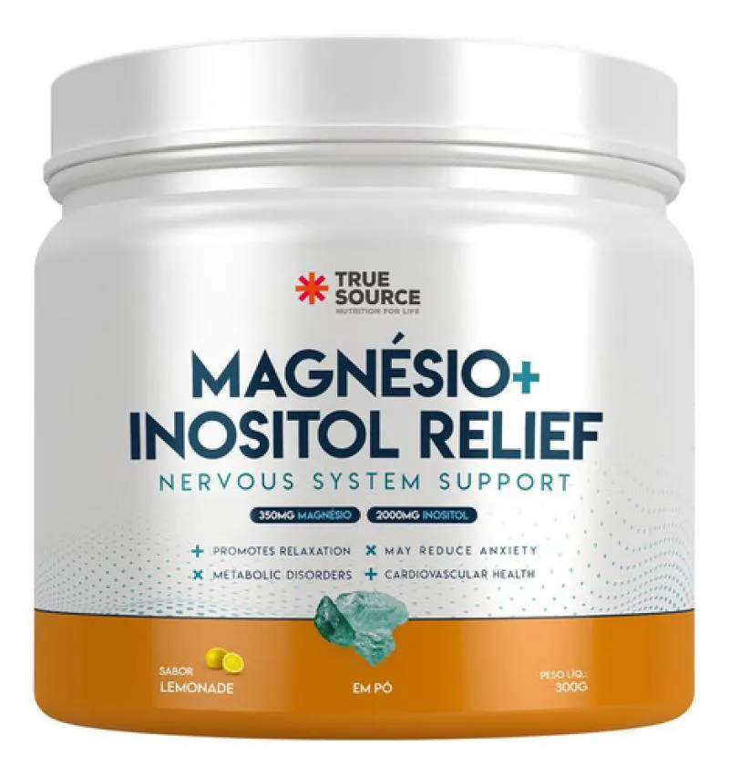 O Magnésio + Inositol Relief 1.0 da True Source é um suplemento em pó que combina dois nutrientes essenciais para o bem-estar mental e corporal: o magnésio na forma de bisglicinato e o inositol. A versão Lemonade (sabor limão) oferece uma experiência cítrica e refrescante, mantendo uma fórmula clean-label, livre de glúten, lactose e açúcar. A marca posiciona este produto como uma solução para auxiliar o equilíbrio emocional, a qualidade do sono, a função neuromuscular e o metabolismo energético.Composição / Ingredientes
