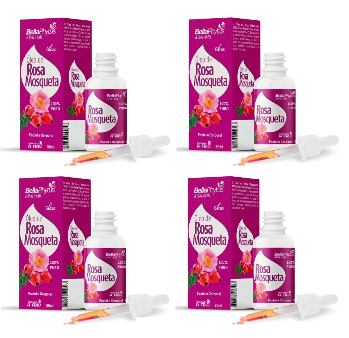 Kit 4 Óleo de Rosa Mosqueta 100% Puro BellaPhytus 30ml