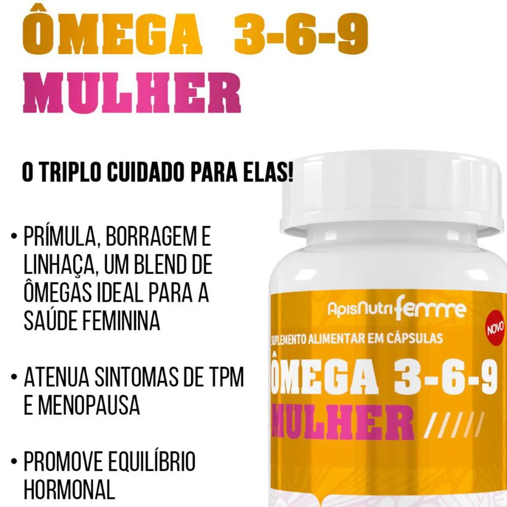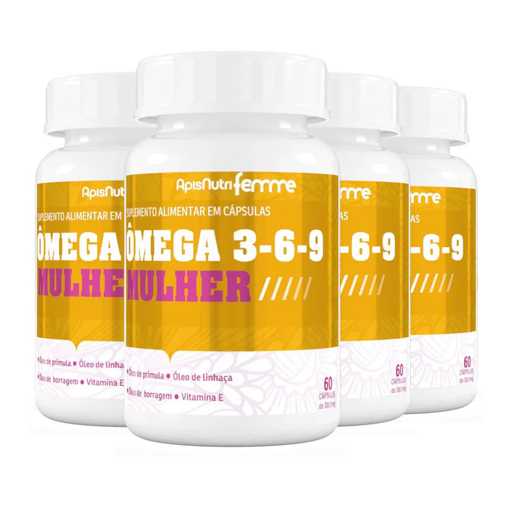 Kit 4 Ômega 3-6-9 Mulher Borragem Prímula e Linhaça 60 Caps Apisnutri