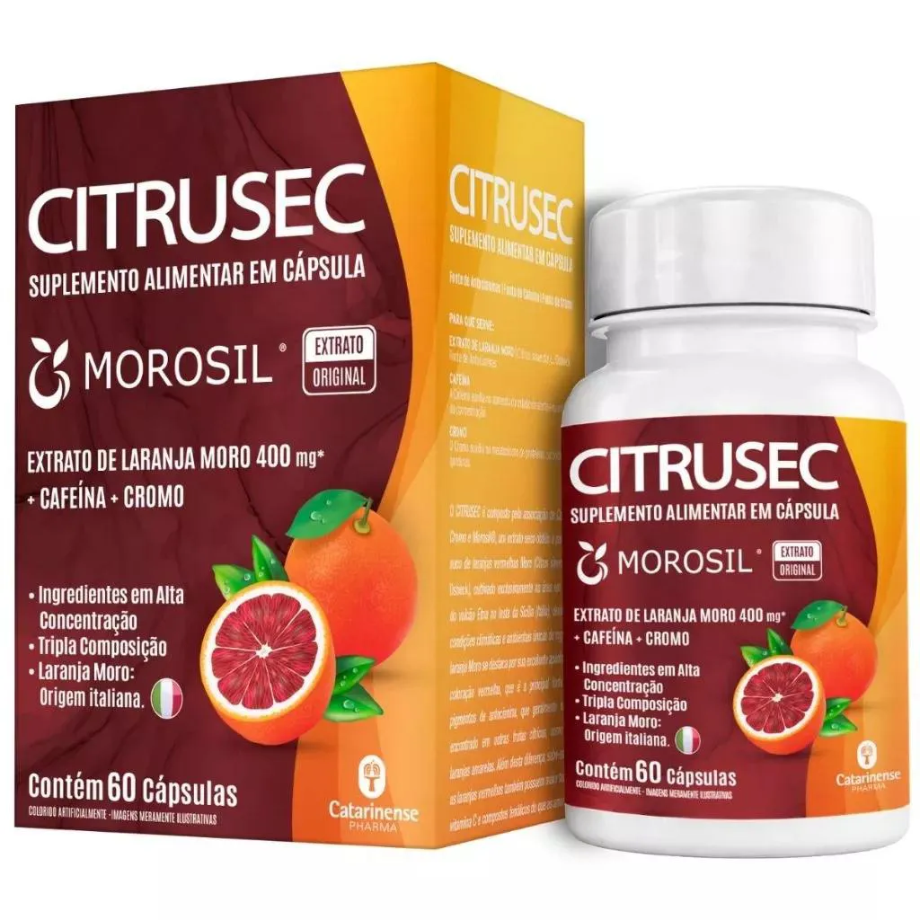 É um extrato obtido a partir do suco de laranjas vermelhas Moro, combinado com cafeína e cromo, que ajuda você a encontrar a melhor forma de conquistar mais qualidade de vida de um jeito saudável e seguro.Possui em sua composição Extrato de Laranja Moro, Cafeína e Picolinato de Cromo.