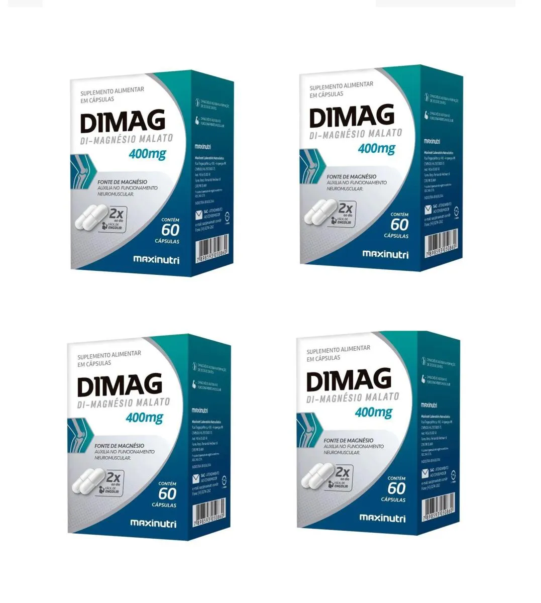 Kit 4 Suplemento Dimag Magnésio Dimalato Maxinutri 60Cps