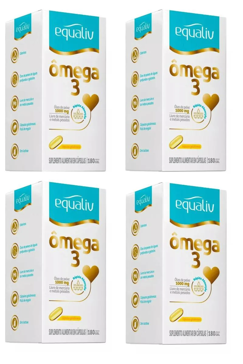Kit 4 Suplemento Equaliv Omêga 3 Selo IFOS 180Cps em Gel