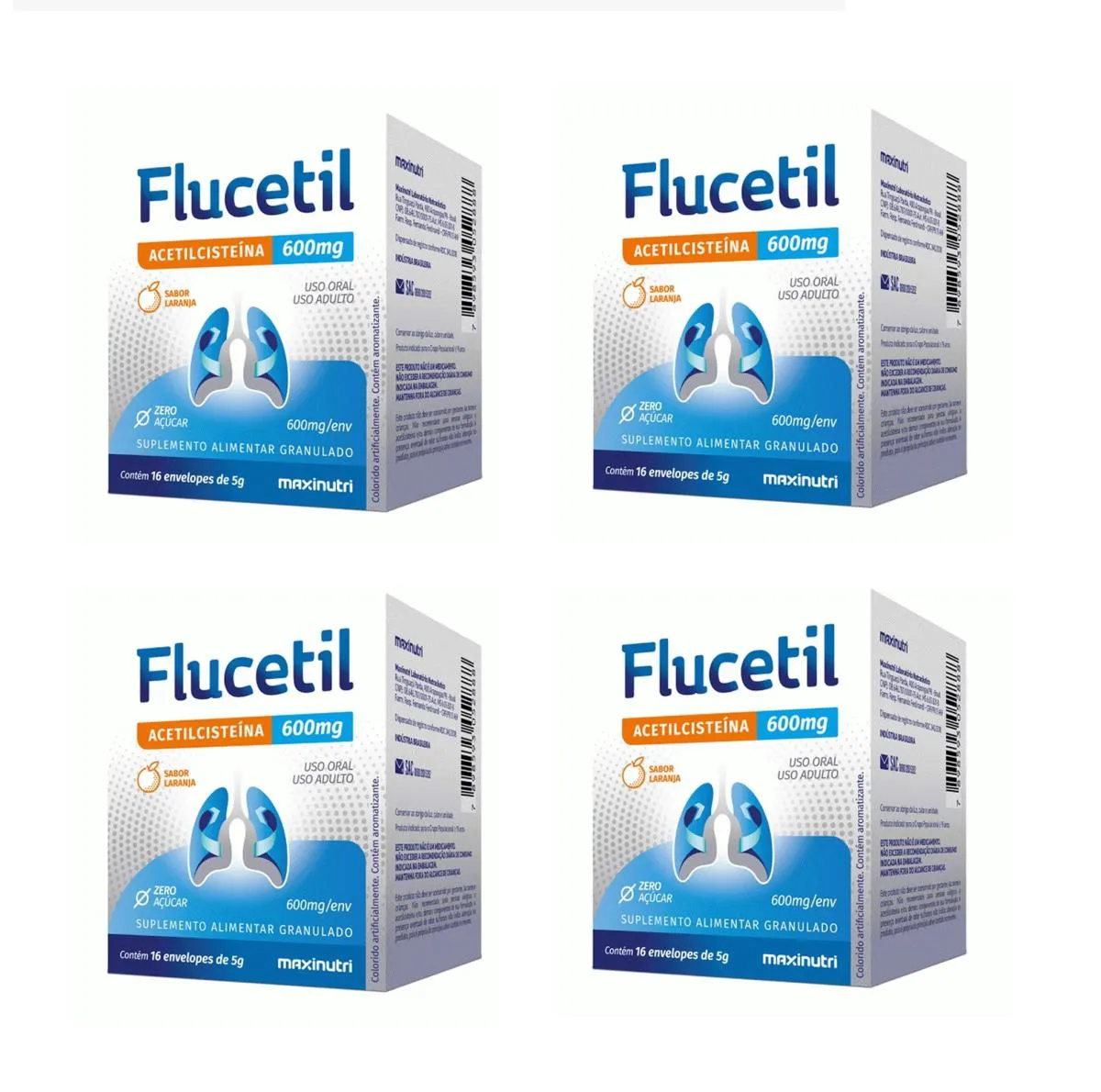 KIT 4 SUPLEMENTO FLUCETIL ACETILCISTEíNA LARANJA 16ENV