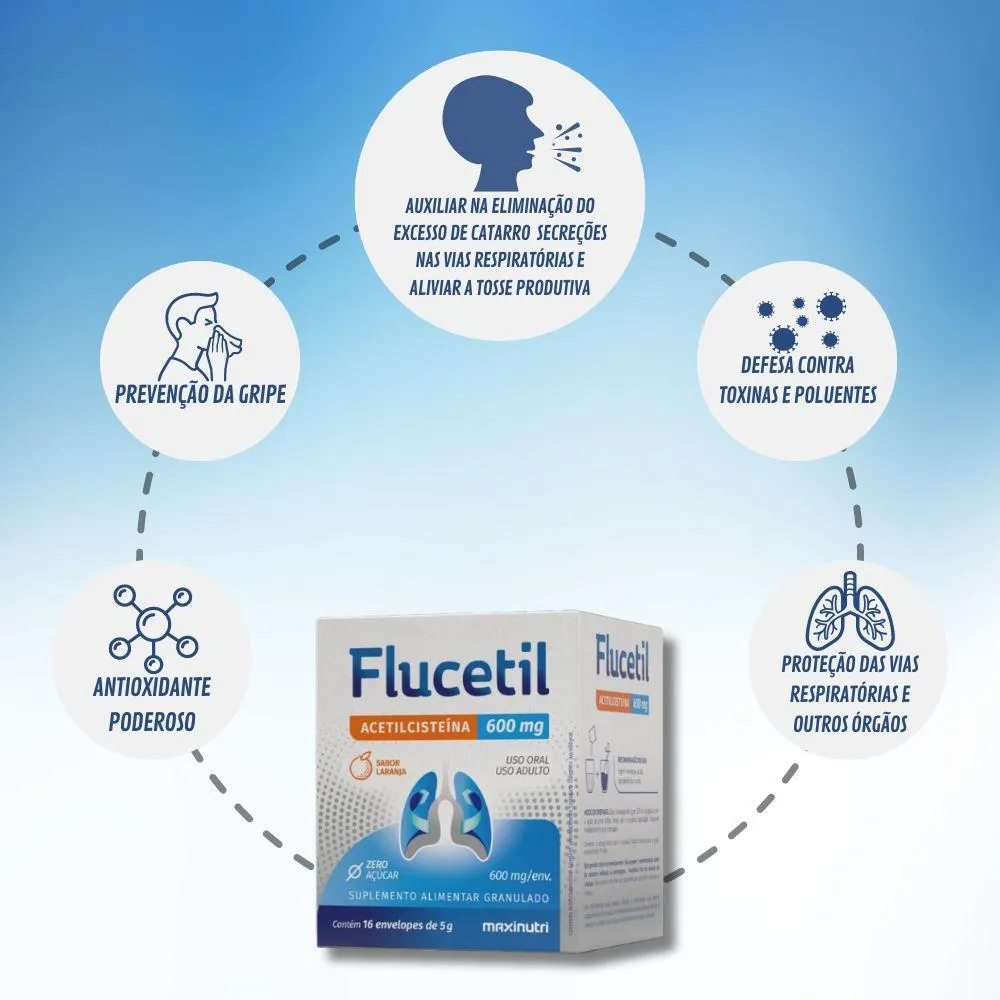 O que é e para que serve o Kit 4 Suplemento Flucetil Acetilcisteína Laranja 16Env?