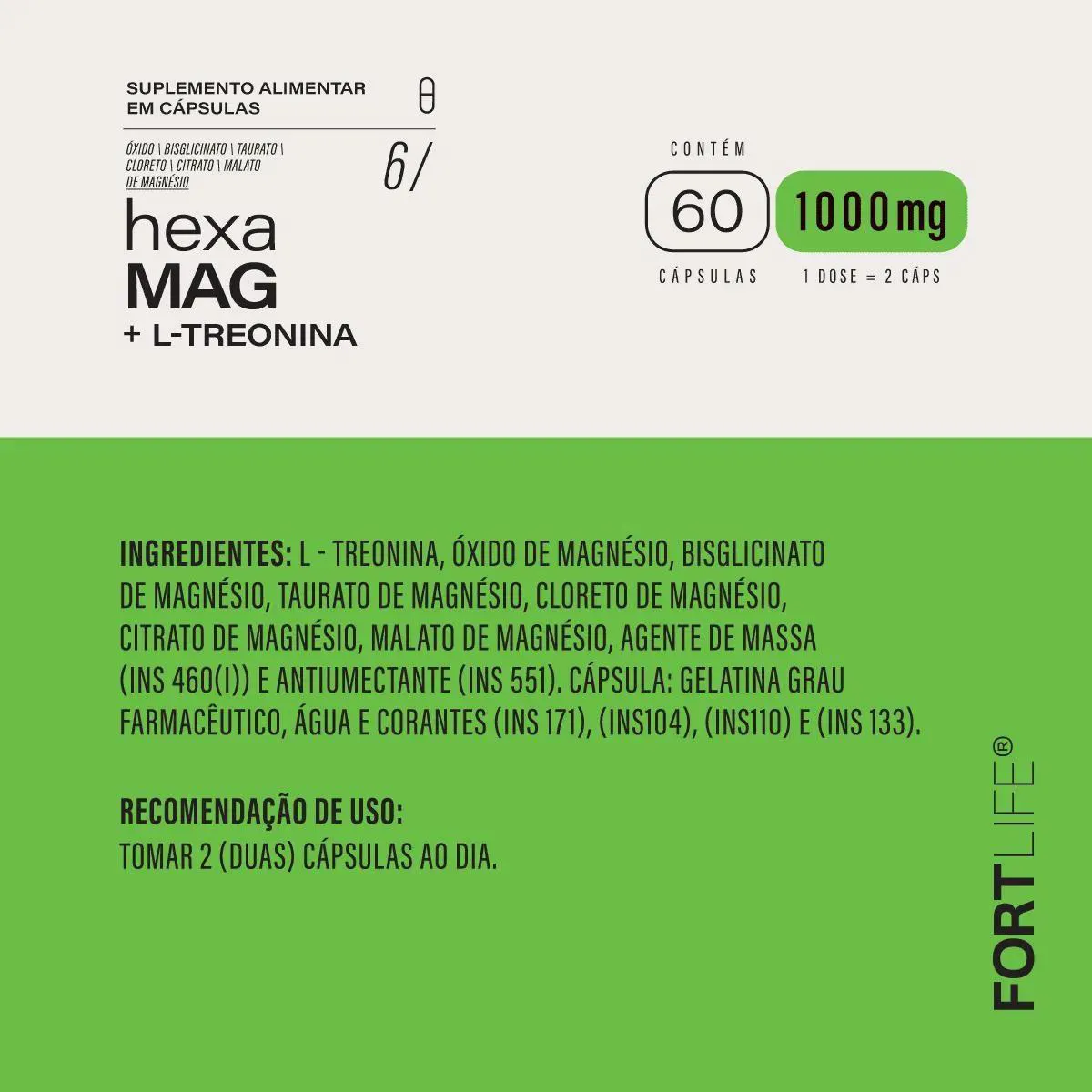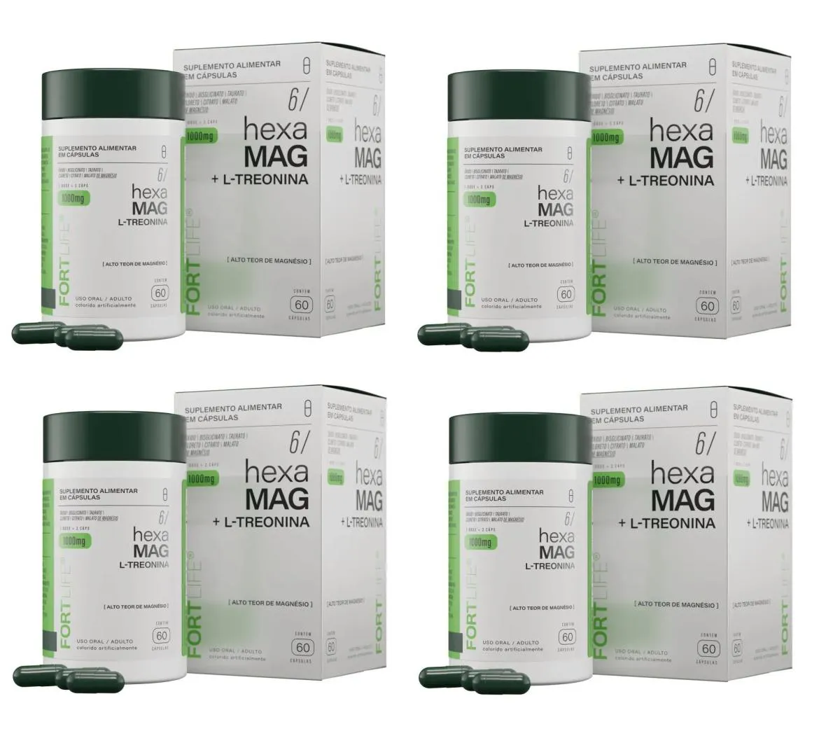 O que é e para que serve o Kit 4 Suplemento Hexa Mag + L-Treonina Fortlife 60Cps?