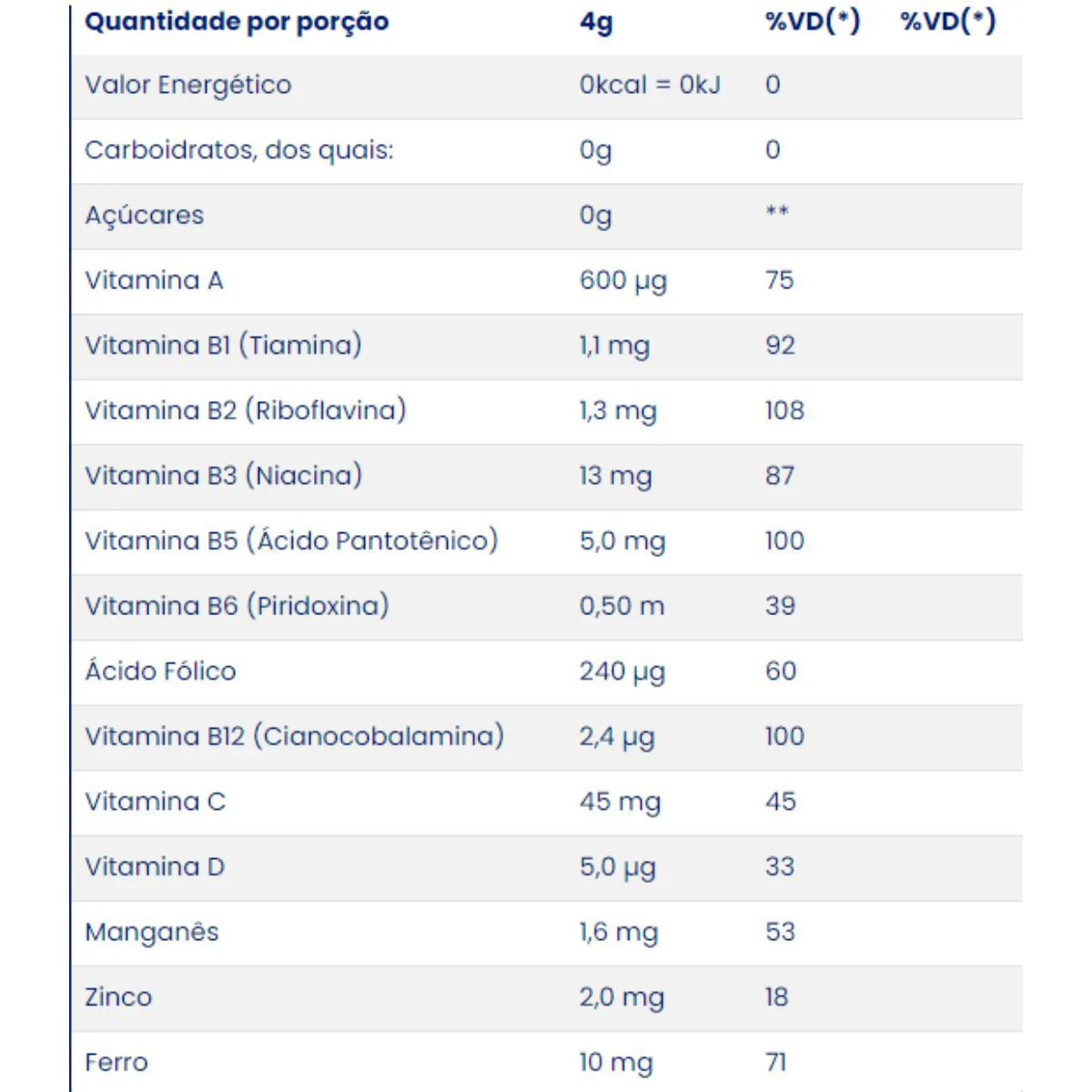 - Fórmula com vitaminas e minerais essenciais.