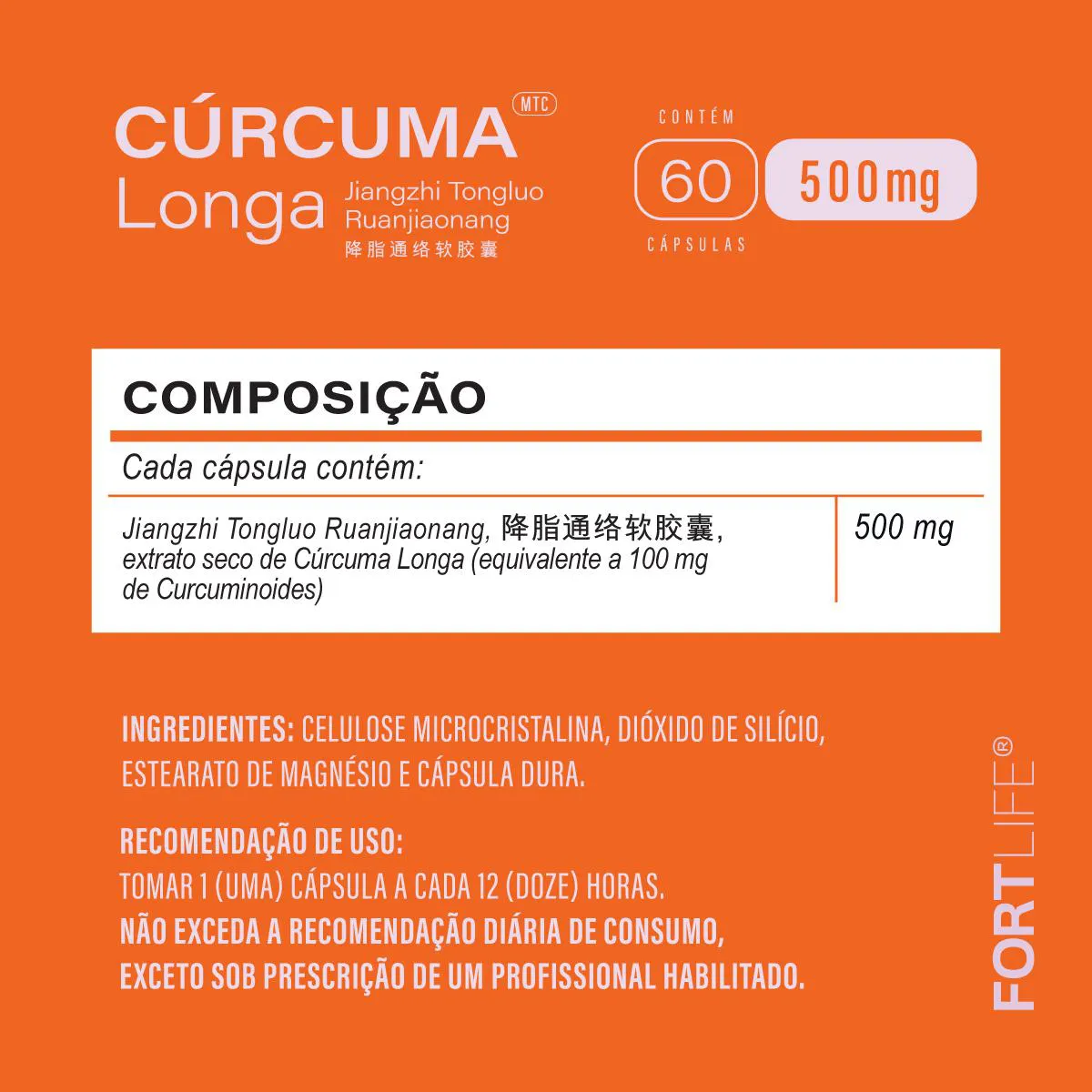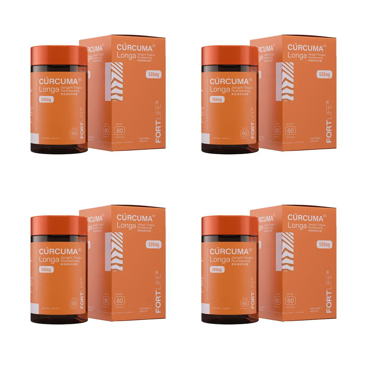 Kit 4 Und Cúrcuma Longa 500Mg 60 Cápsulas Fortlife