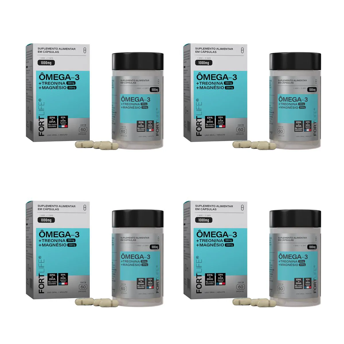 Kit 4 Und Ômega-3 + Treonina + Magnésio 1000Mg 60 Cápsulas